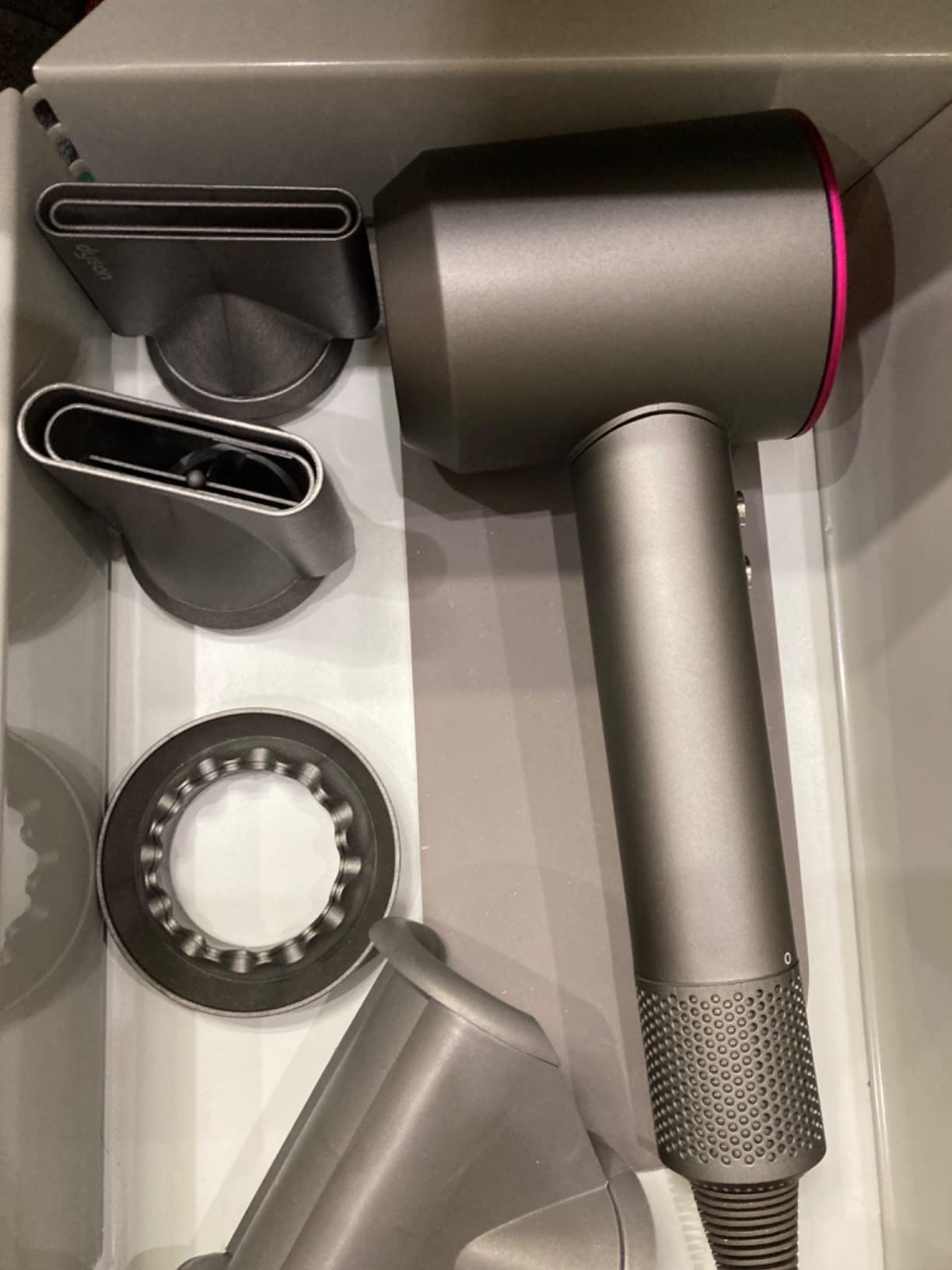 Prodotto originale con garanzia Dyson di due anni riconosciuta nel sito ufficiale mediante l’inserimento del numero di serie apparecchio. Asciugacapelli unico nel suo genere , il getto d’aria non brucia i capelli anzi li pettina letteralmente. Ottimo prodotto