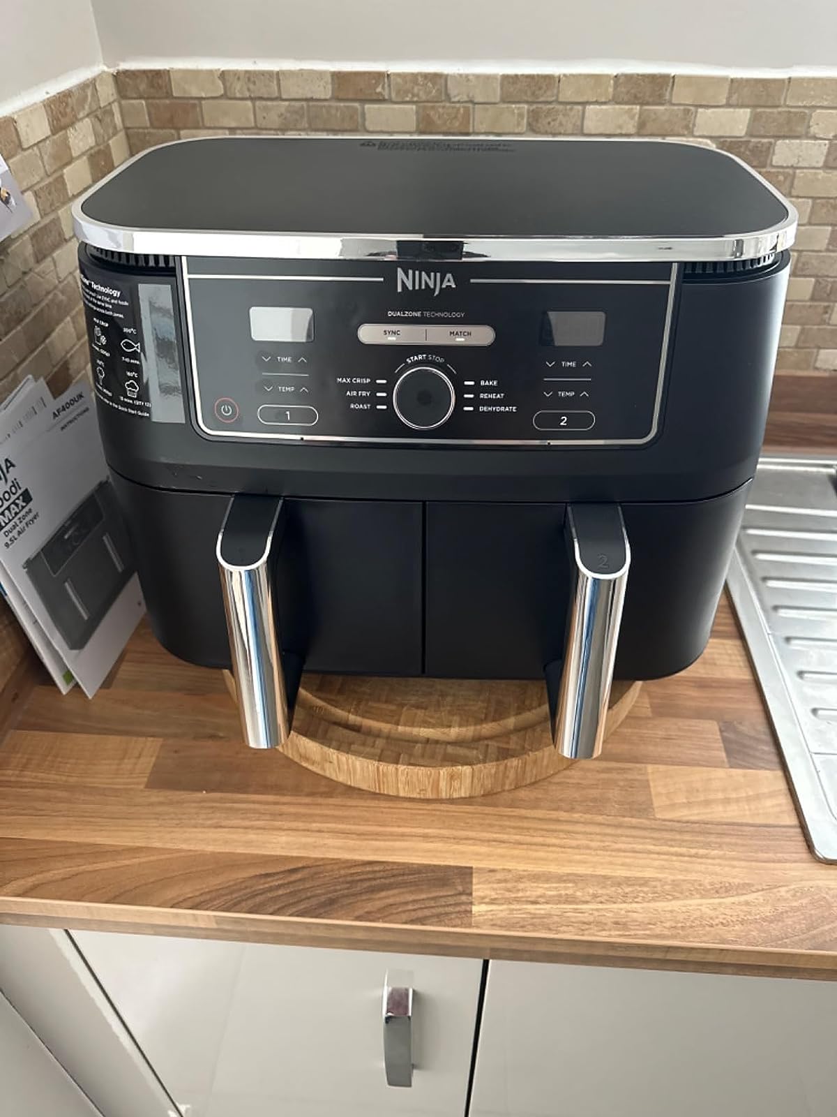 We have been thinking of purchasing an airfryer for sometime. We spent time researching on YouTube and among other places to find the right one for us. This appears to be of excellent quality and used by many people. Ninja is a well designed machine and we where pleasantly surprised by how compact it is. The noise level is very low even when you use both sides. Cleaning is very easy just using hot soapy water. I’m pleased to see that you can purchase replacement parts ie crisper trays and draws is you need to. The starter instructions are well written and provide you with tables of cooking instructions for many food items. I would recommend buying this product to anyone.