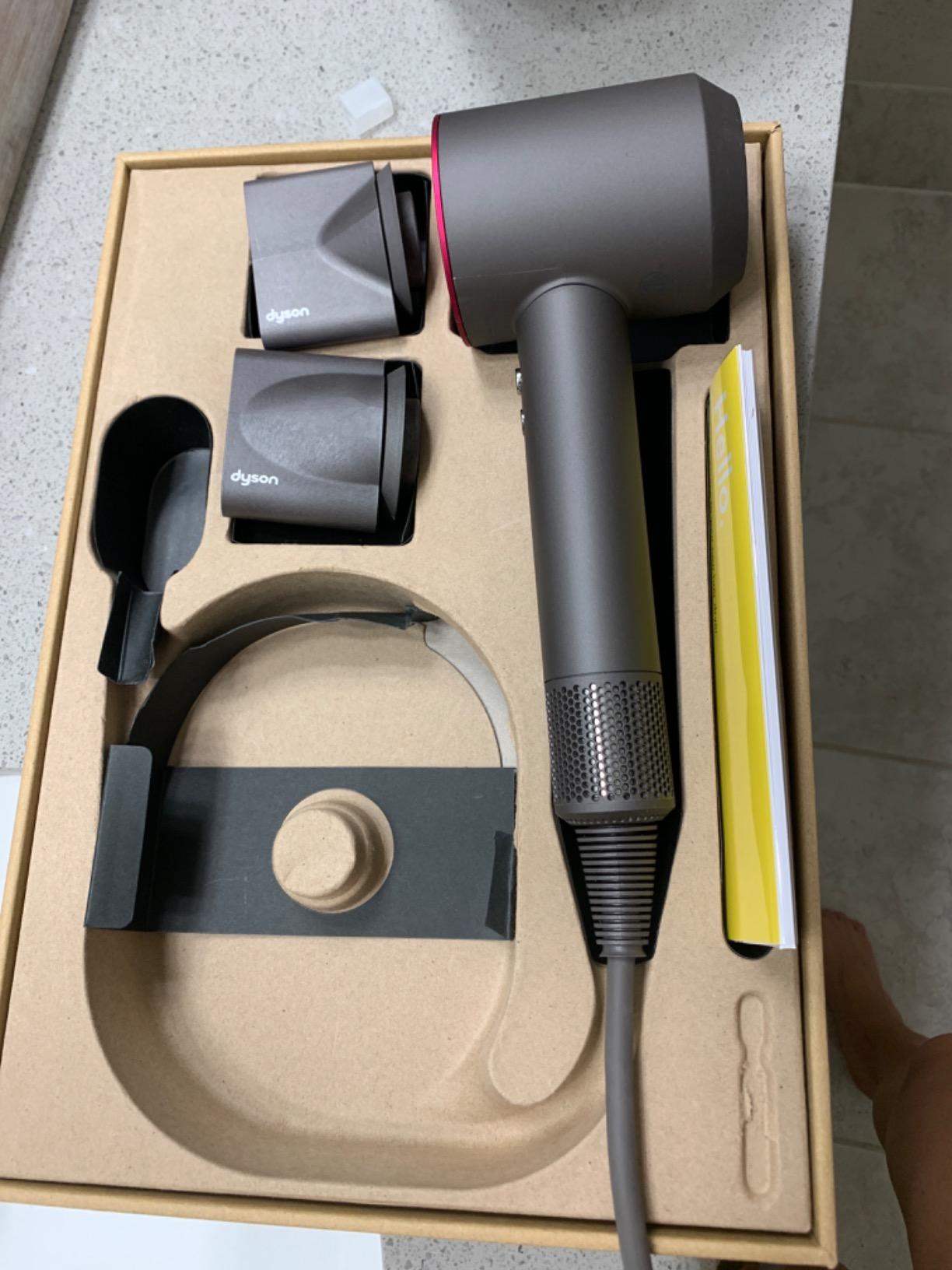 Prodotto originale con garanzia Dyson di due anni riconosciuta nel sito ufficiale mediante l’inserimento del numero di serie apparecchio. Asciugacapelli unico nel suo genere , il getto d’aria non brucia i capelli anzi li pettina letteralmente. Ottimo prodotto